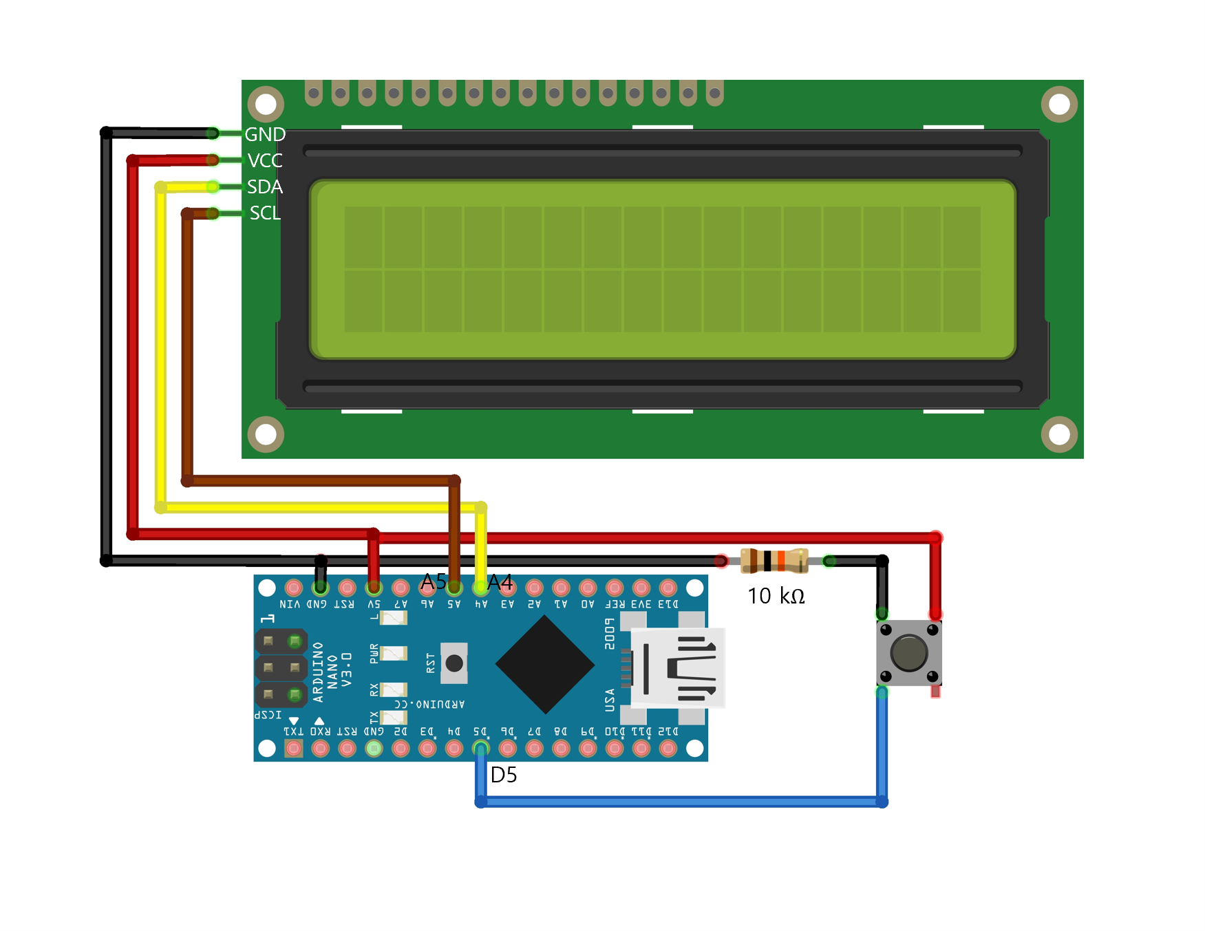 추가적으로 스위치를 통해 LCD 화면을 제어하기 위해, 스위치를 아두이노 D5단자에 연결해주었다.