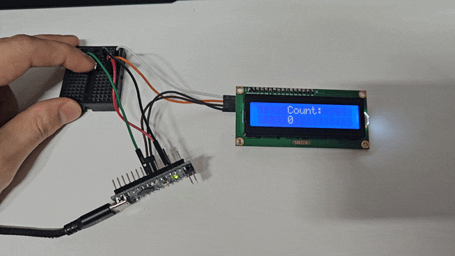 if문 안에서는 count 변수에 숫자를 1 더하고 해당숫자를 LCD에 출력한다. LCD에 새로운 숫자를 출력하기 전에는 lcd.clear를 통해 화면을 초기화해주었다.